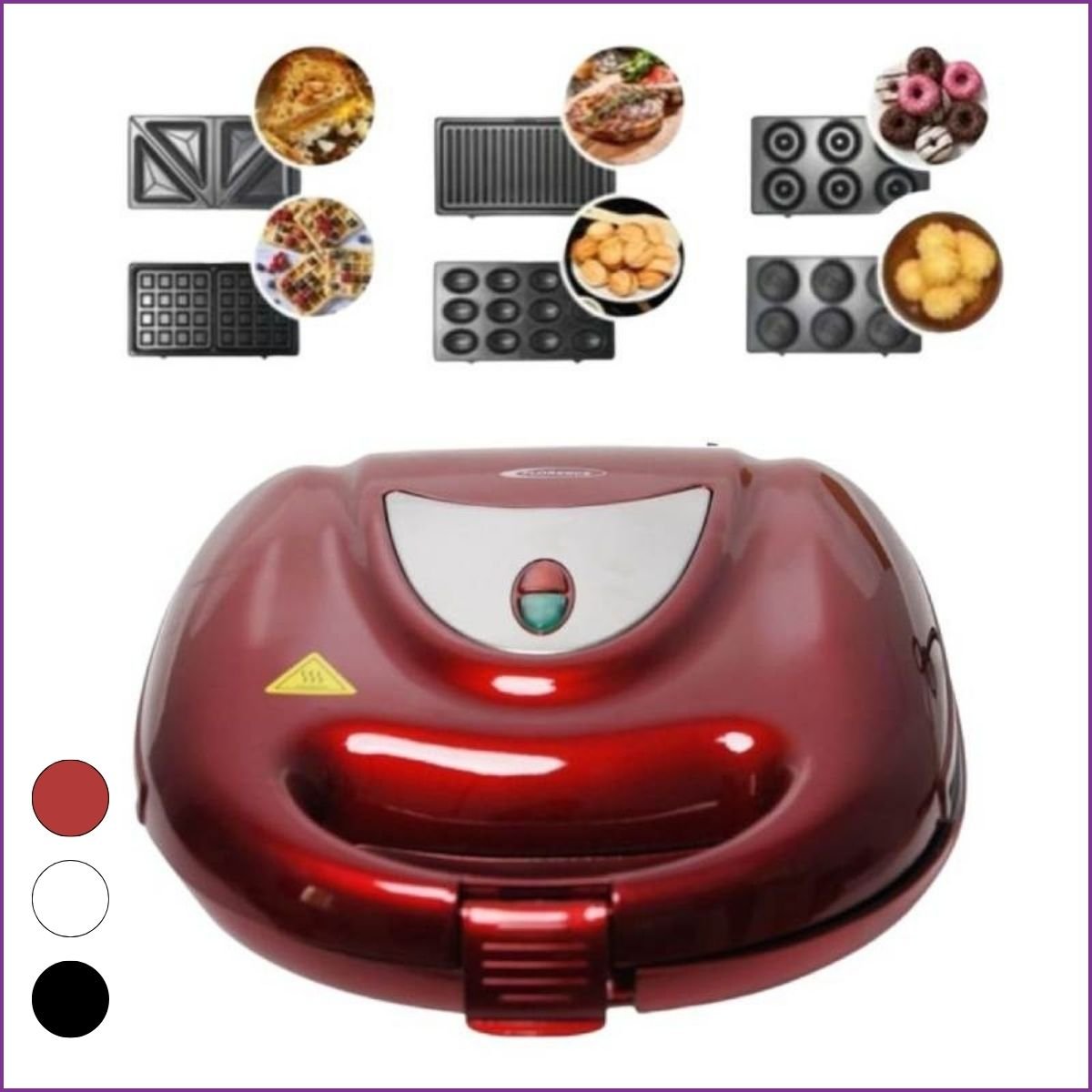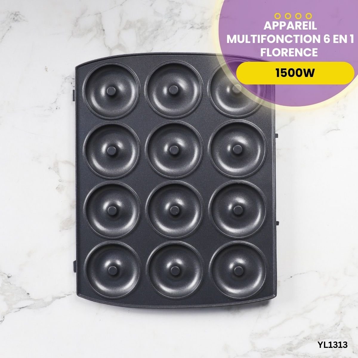 Transformez votre cuisine avec l’appareil 6 en 1 Florence 1500W. Paninis, gaufres, sandwichs, donuts, zouzas, Maamouls. Plaques antiadhésives amovibles.