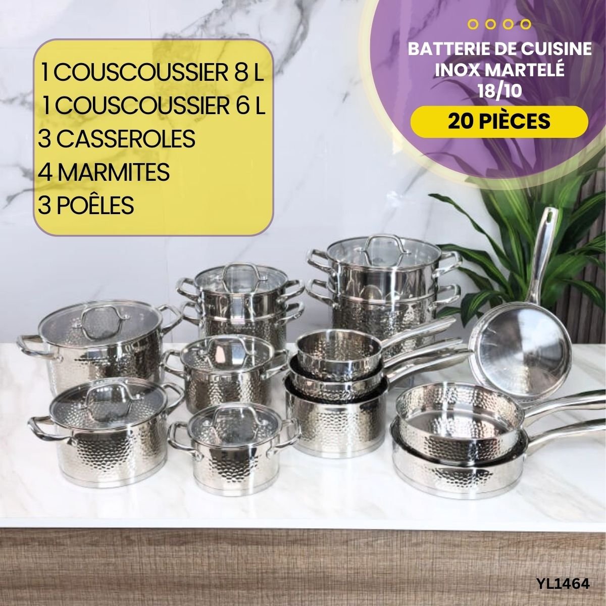 Batterie de Cuisine 20 Pièces Martelé YL1464