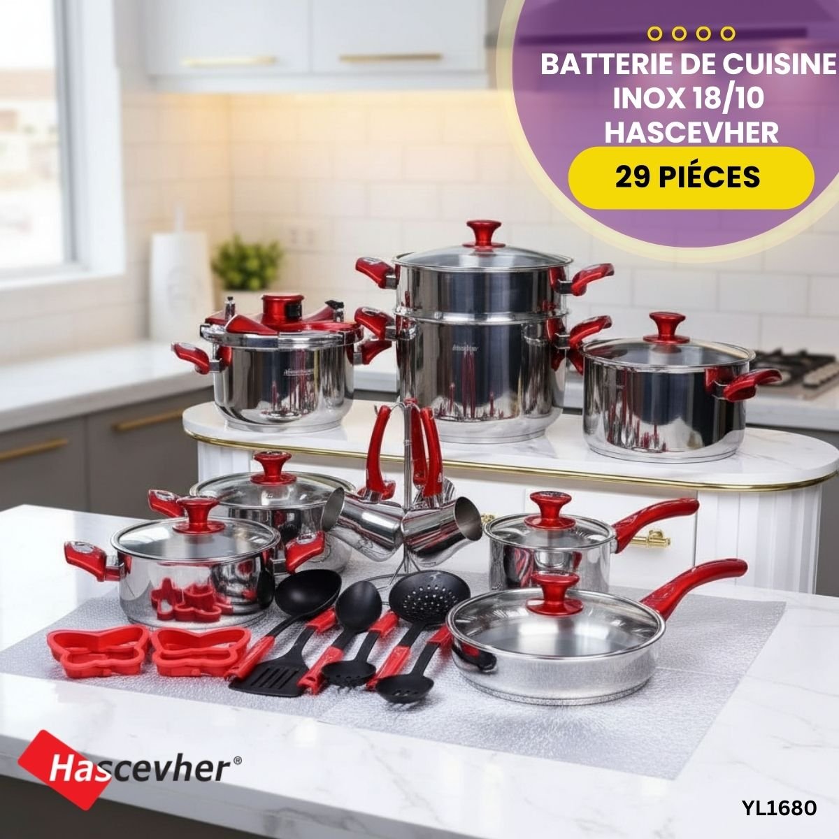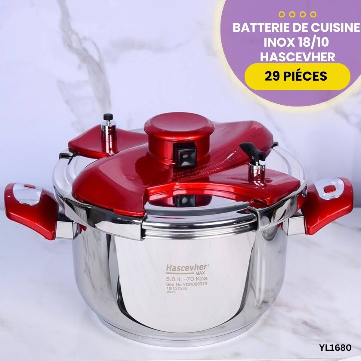 Transformez votre cuisine avec cet ensemble de 29 pièces signé Hascevher. Alliant robustesse et élégance, cette batterie de cuisine de fabrication turque est conçue pour répondre aux exigences de la cuisine quotidienne, qu'elle soit domestique ou professionnelle.