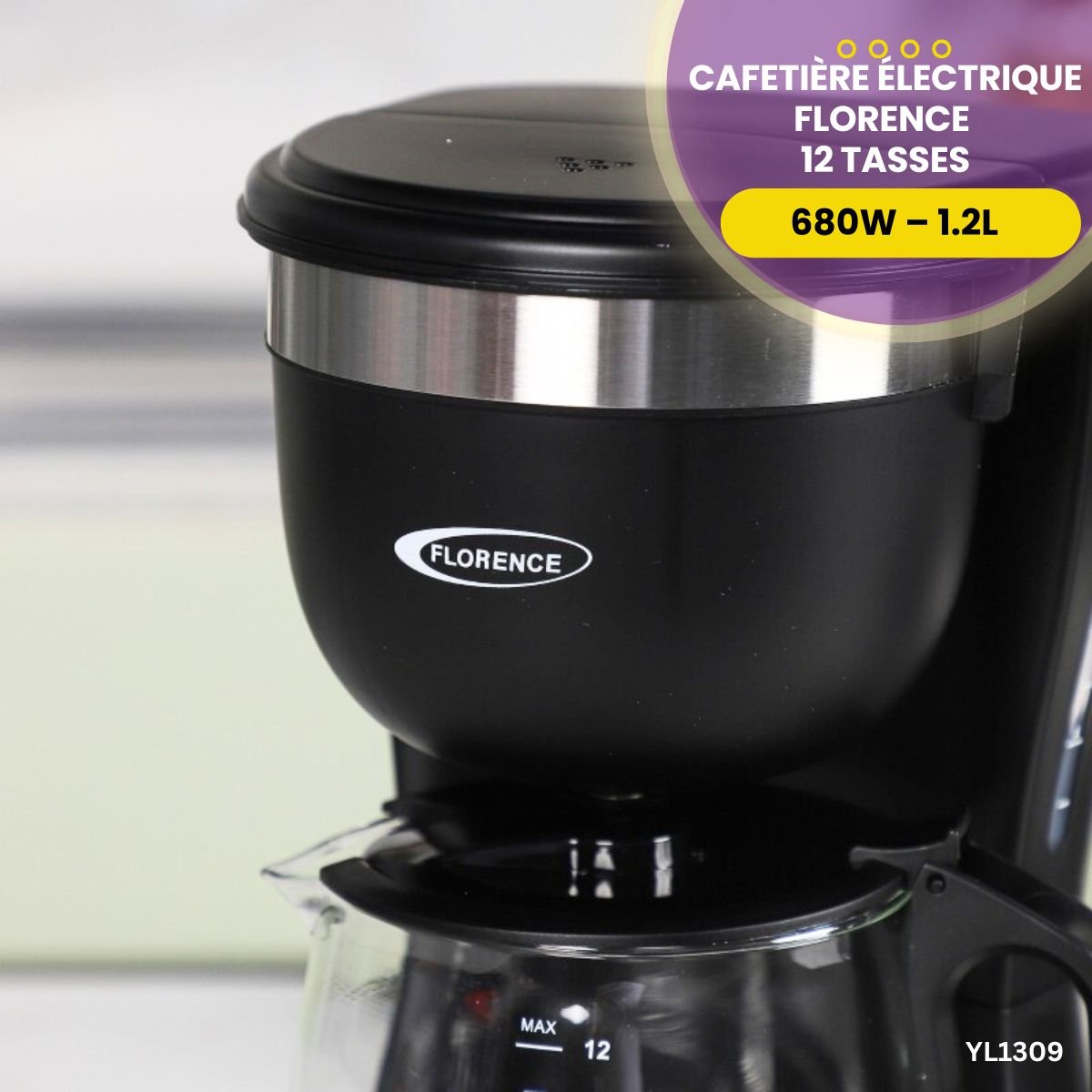 Cafetière Électrique Florence 680W – 1.2L (12 Tasses) – Noir