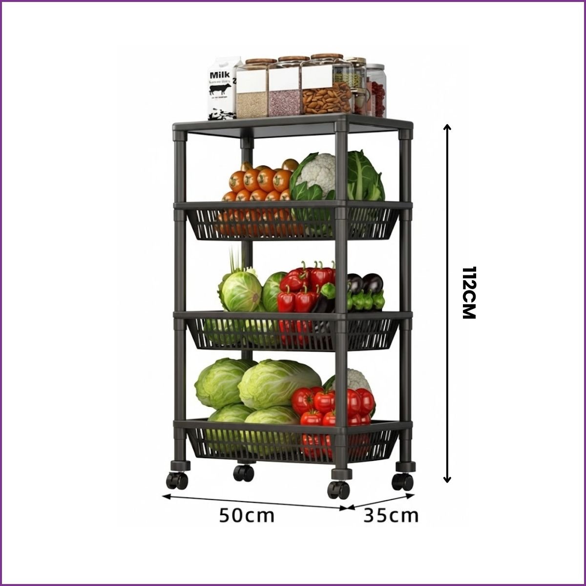 Optimisez votre espace avec ce chariot à roulettes 50x35x112cm. Idéal pour cuisine, salon de coiffure, chambre ou bureau. Robuste, mobile et facile à monter.