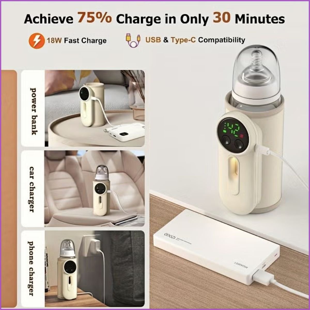 Le Chauffe-Biberon Portable Sans Fil est l’accessoire indispensable pour nourrir bébé avec précision, où que vous soyez.