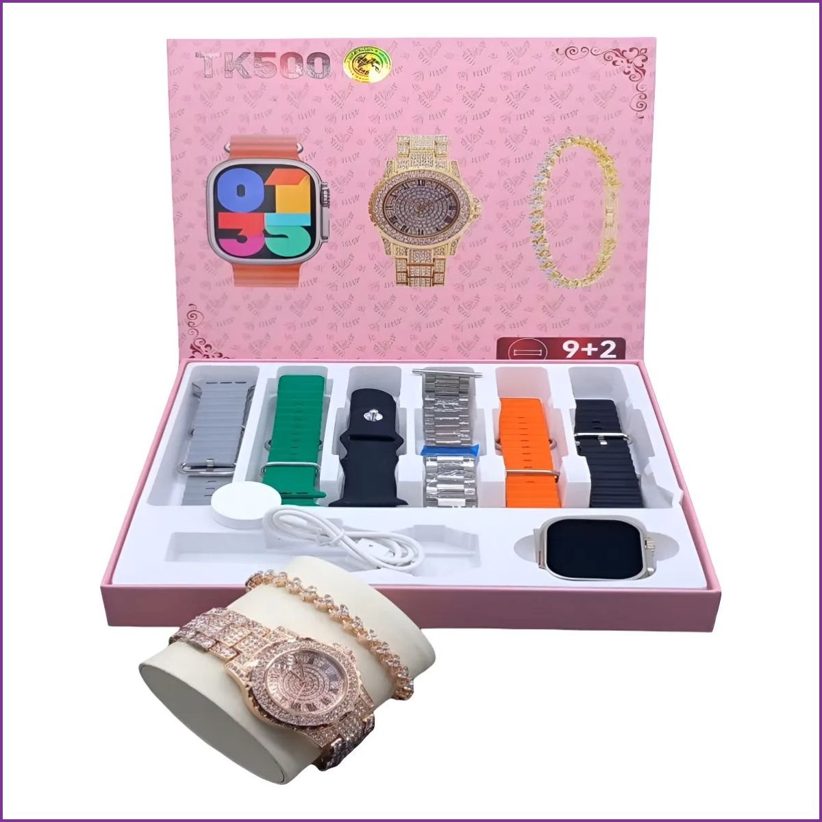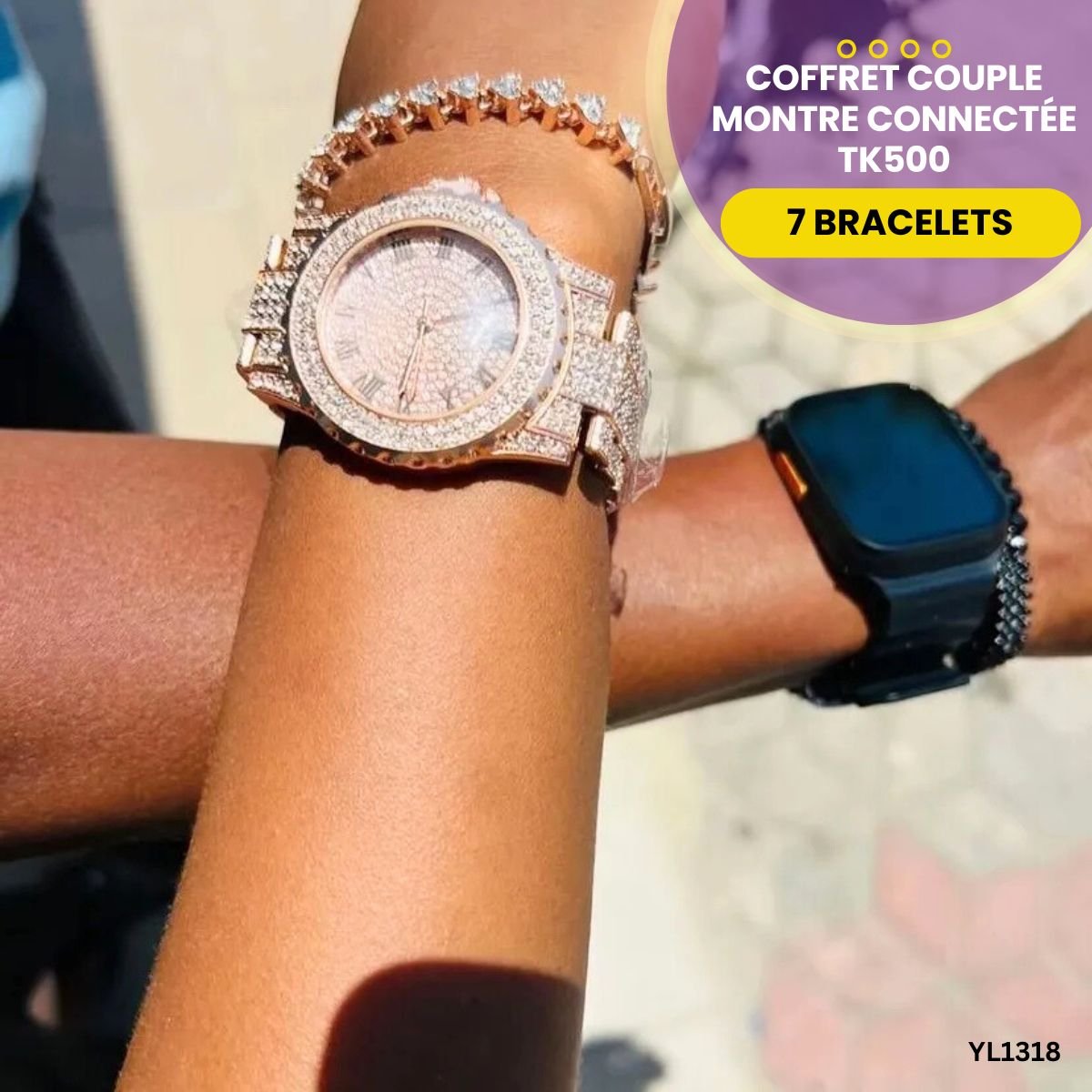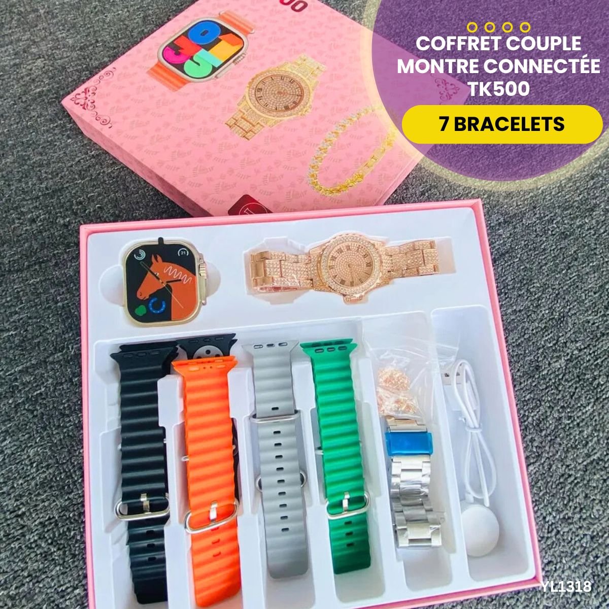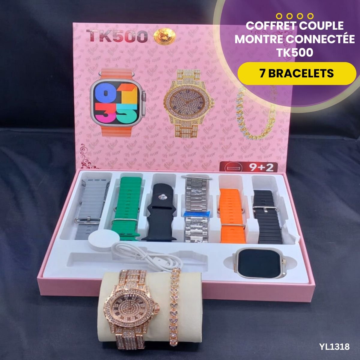Le coffret 9+2 TK500 est le cadeau parfait : une Montre Connectée Smart Watch Ultra (HD Tactile, Bluetooth, Suivi Santé) + une Montre Bracelet Diamant.