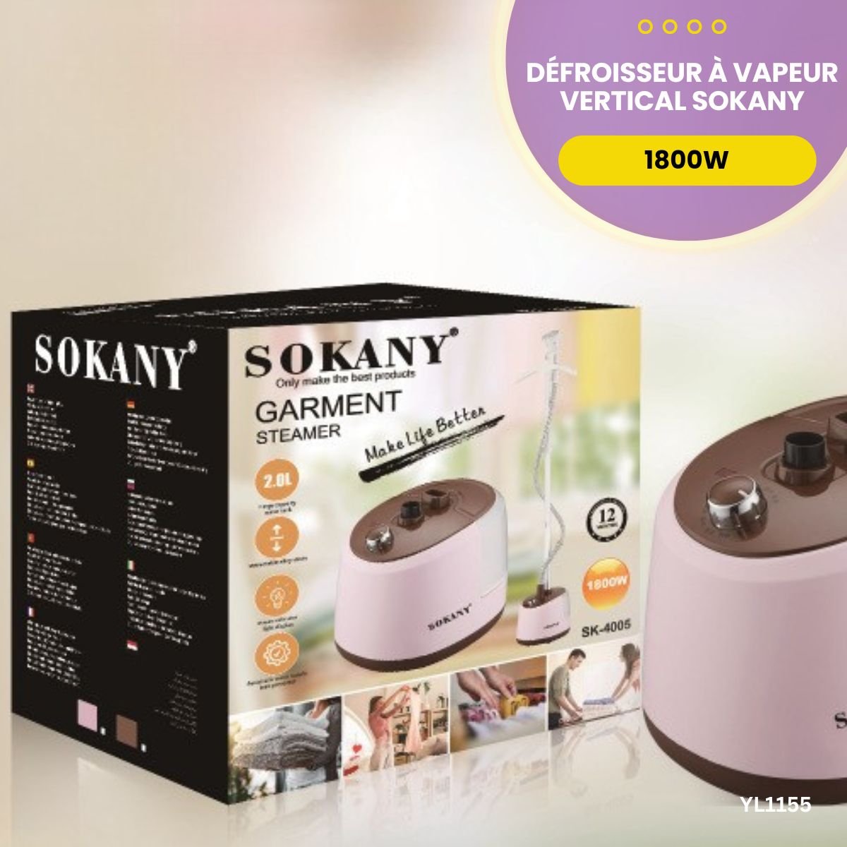 - Avec le défroisseur Sokany 1800W YL1155, profitez d’un linge toujours impeccable, sans effort ni planche à repasser.