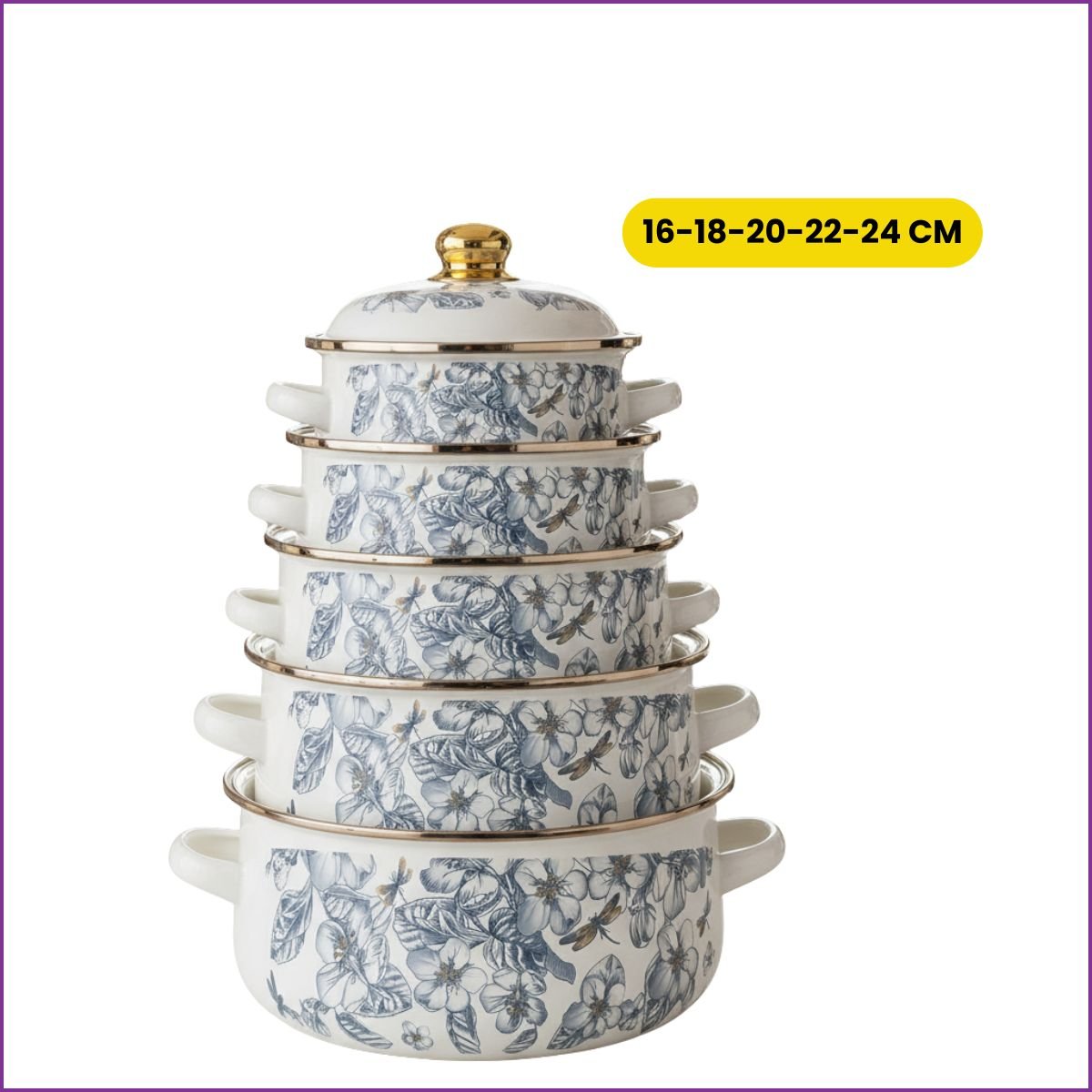 Batterie de Cuisine Émaillée Florale 5 Pièces – L'Élégance au Quotidien