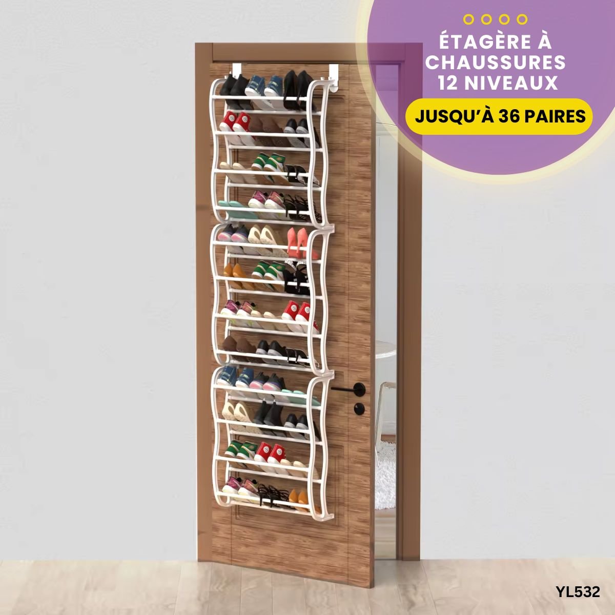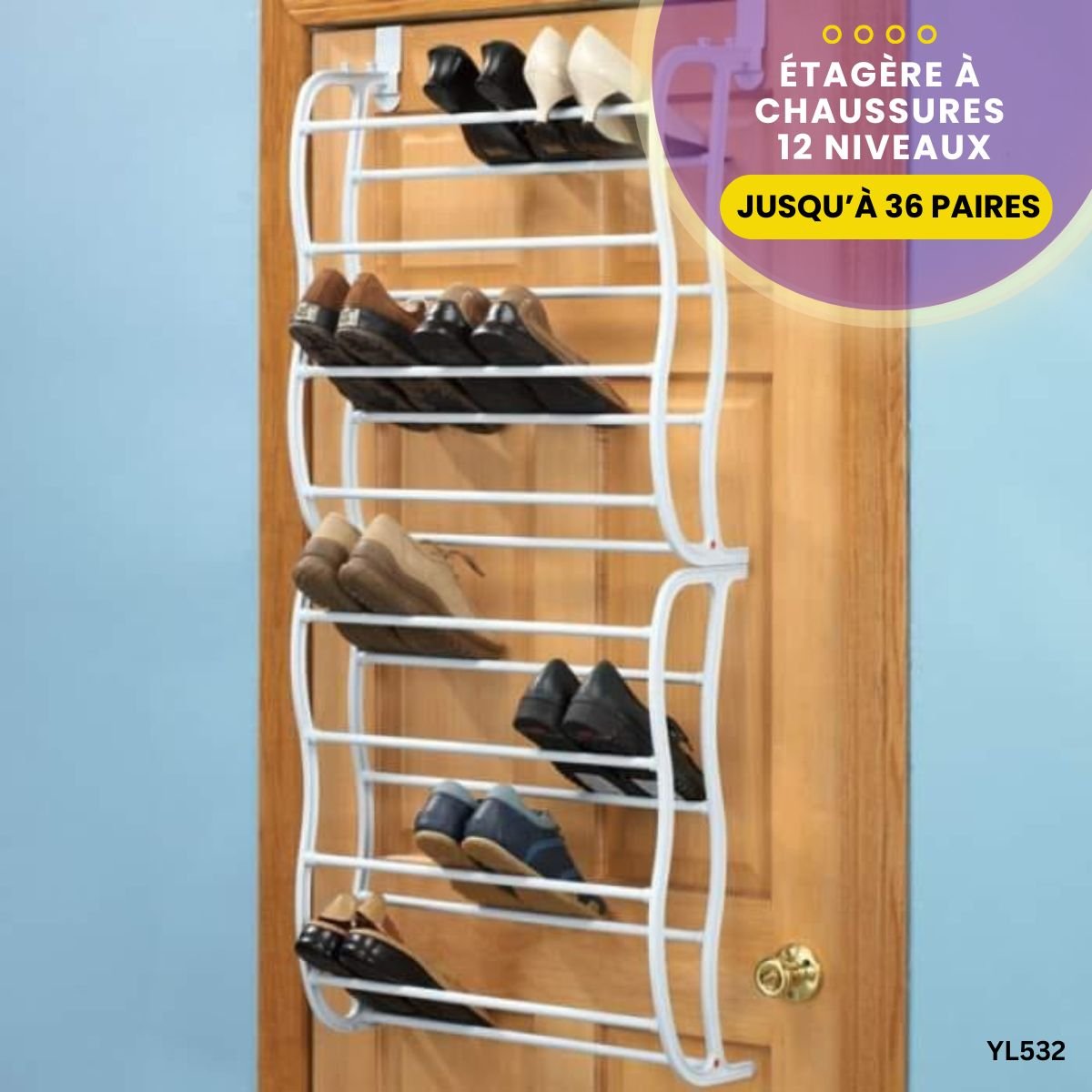 L’étagère à chaussures suspendue organise jusqu’à 36 paires, optimisant l’espace et offrant une solution pratique et ordonnée pour ranger vos chaussures.