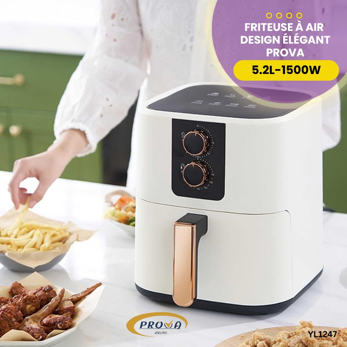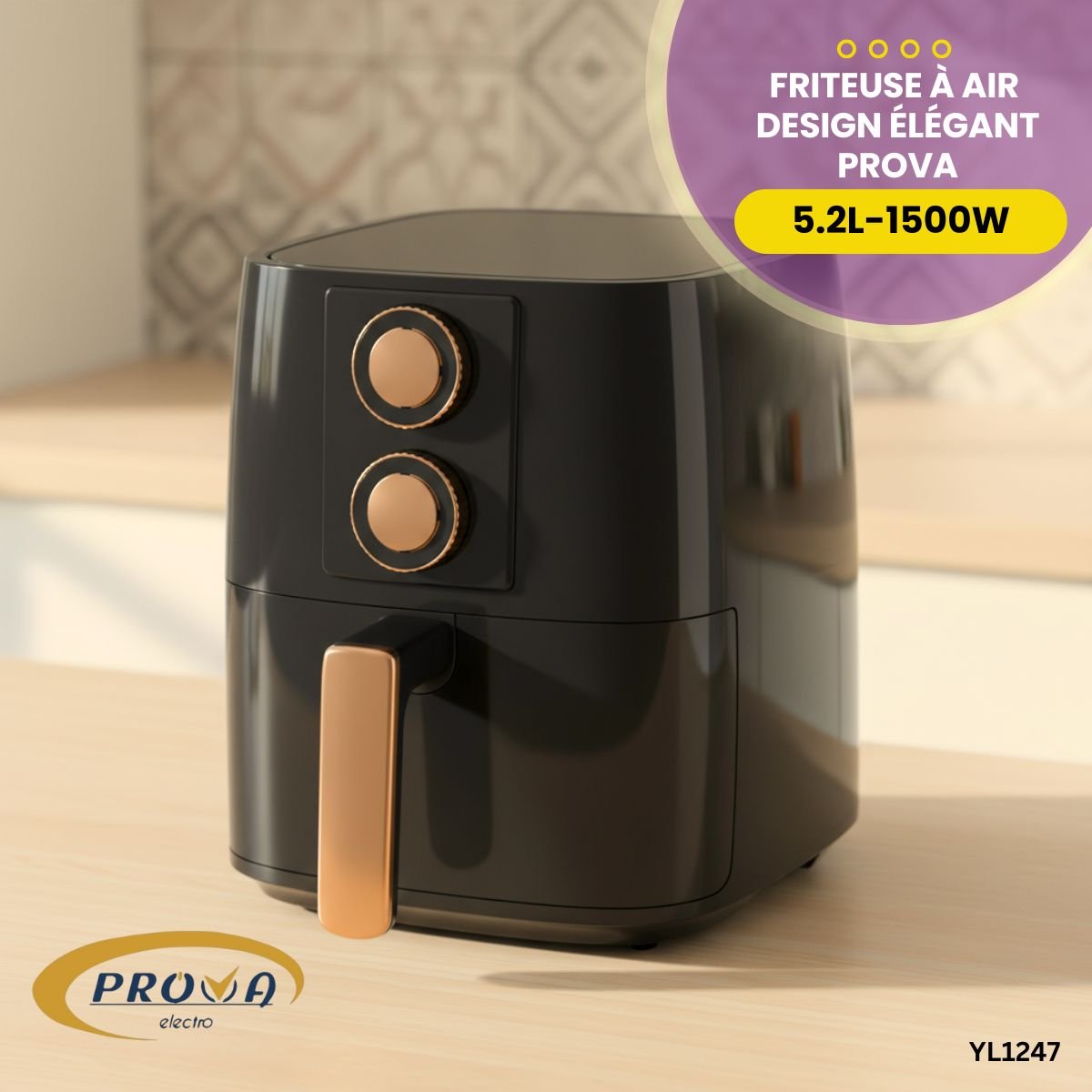 Friteuse à Air Prova – 5.2 Litres – 1500W – Design Élégant – Réf. YL1247