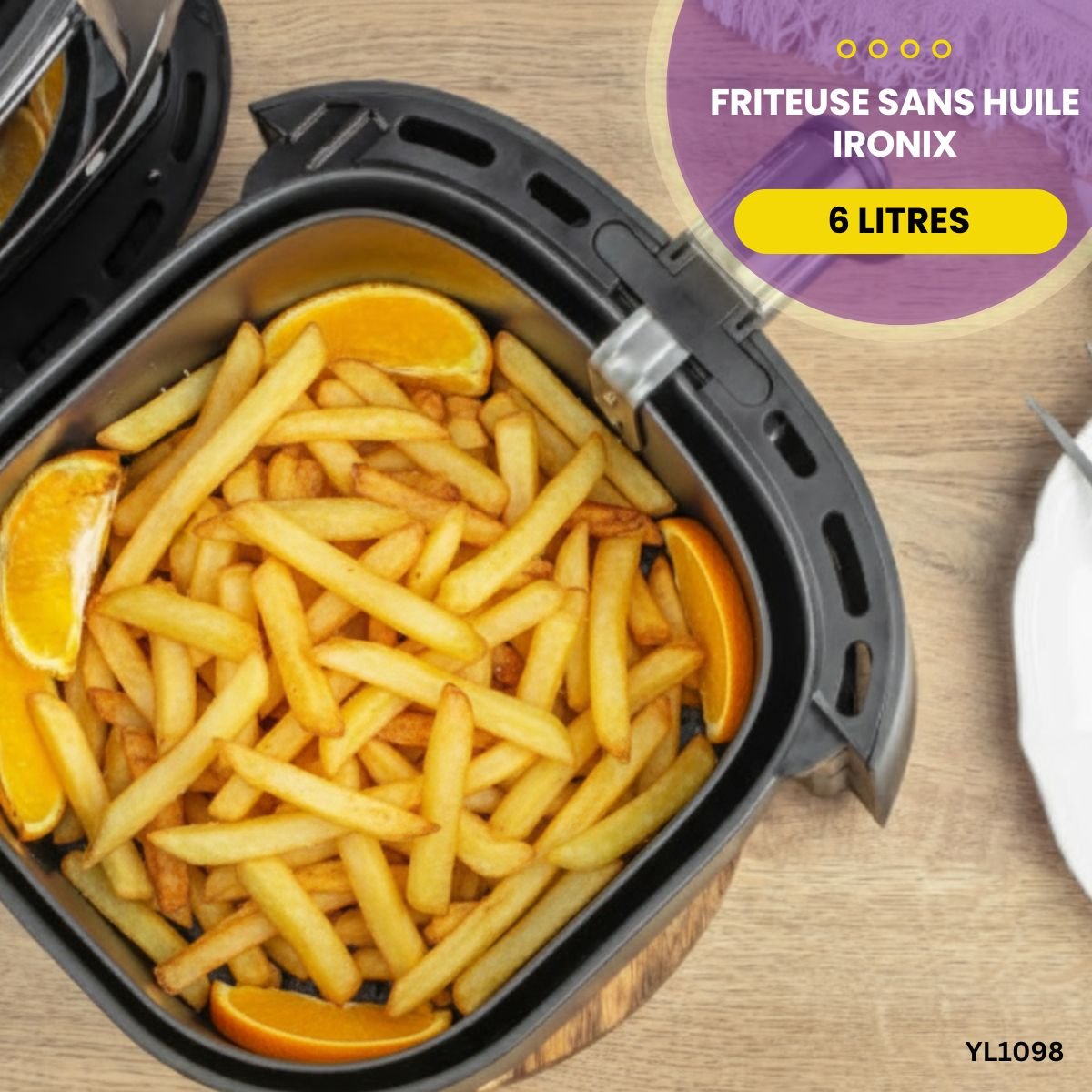 Friteuse sans huile IRONIX 6L – Cuisson saine à air chaud. Compacte, performante et facile à utiliser. Idéale pour une cuisine légère au quotidien.