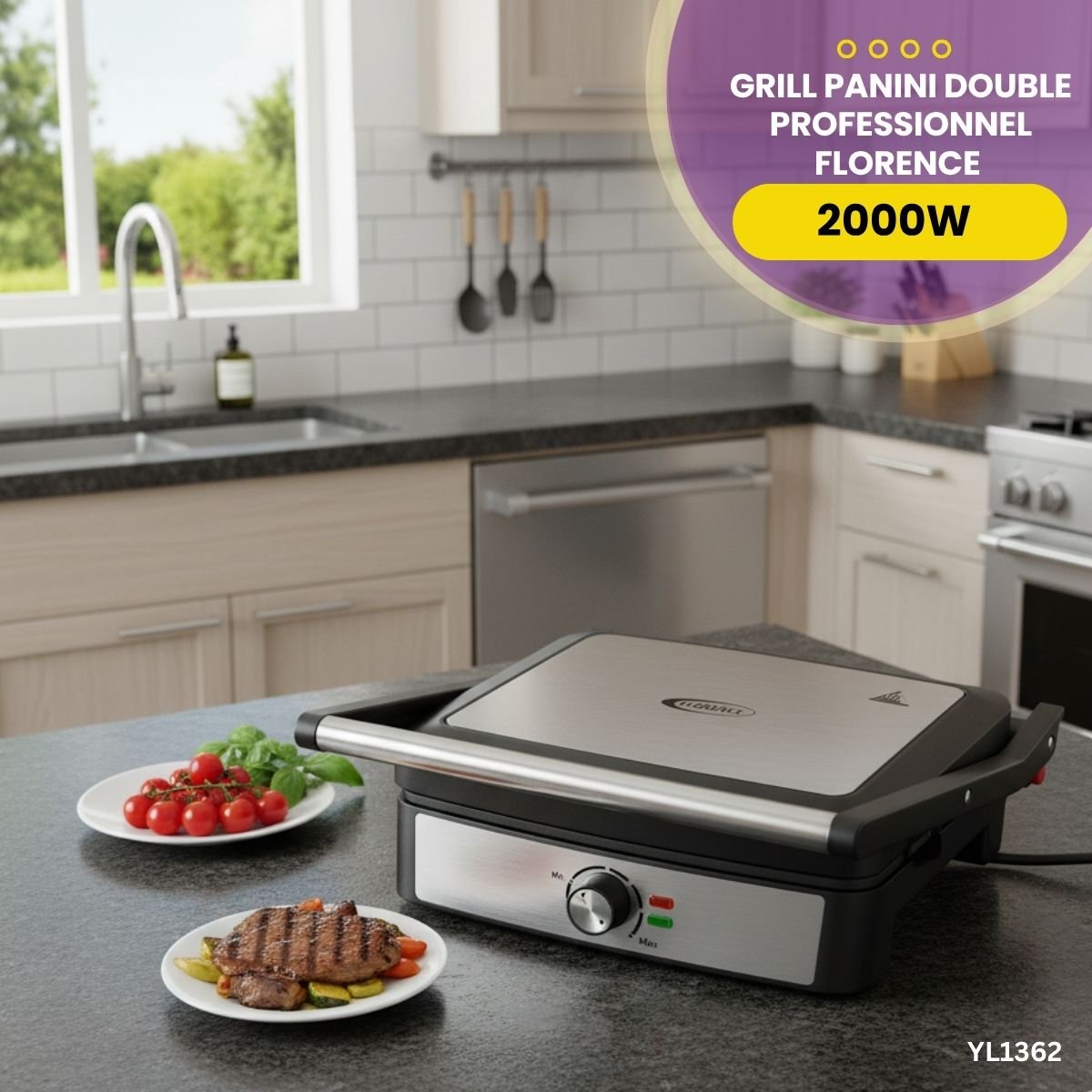 Cet appareil combine l'élégance du design Florence avec une puissance exceptionnelle, transformant votre cuisine en une véritable station de grillade intérieure.