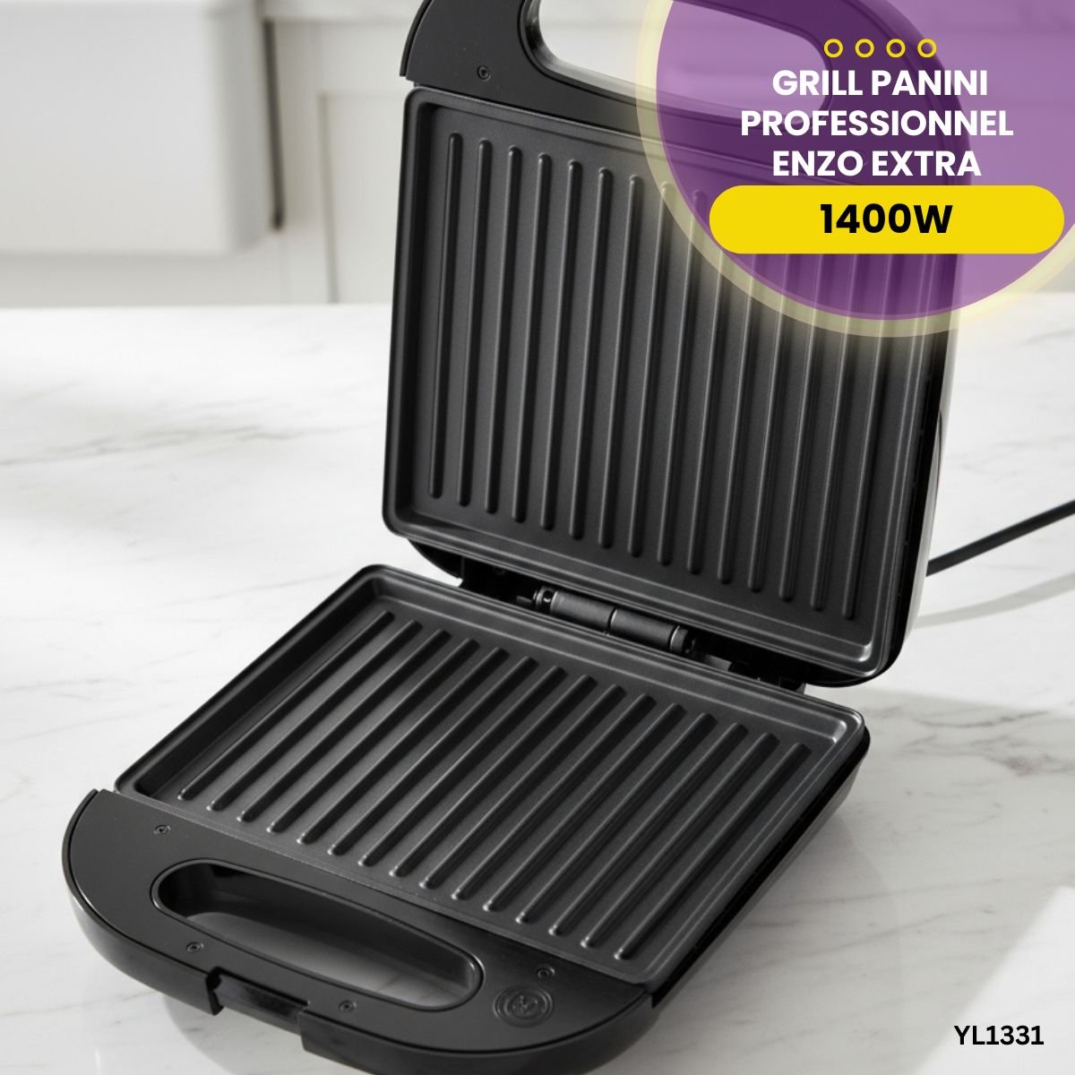Faites l'expérience d'un résultat professionnel à la maison avec le Grill Panini ENZO Extra 1400W. Conçu pour la performance et la simplicité, cet appareil est l'outil indispensable pour des sandwichs chauds, des paninis croustillants et des grillades parfaitement saisies.