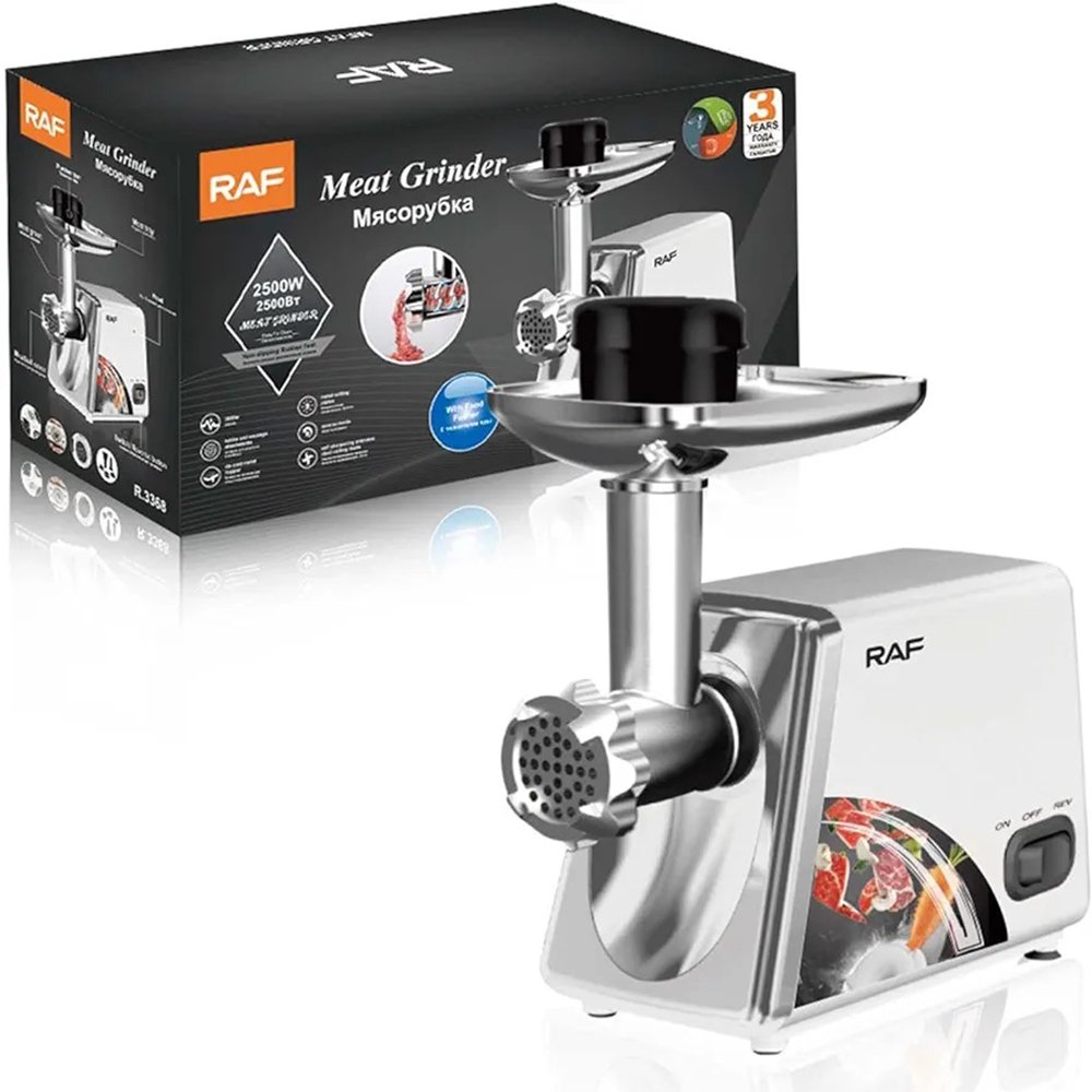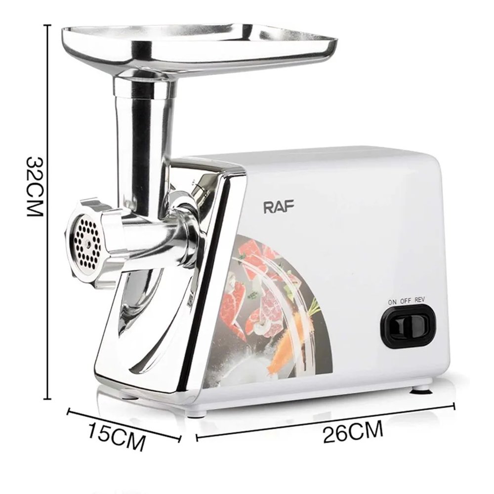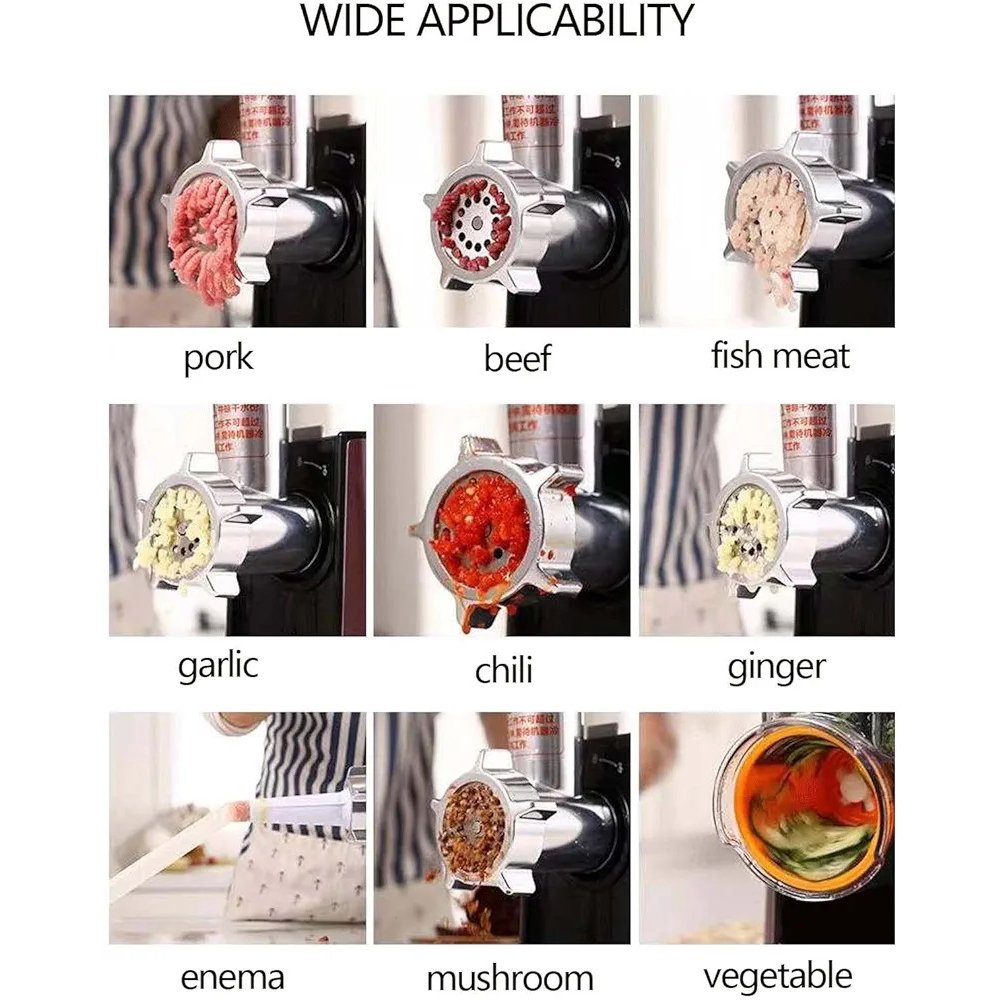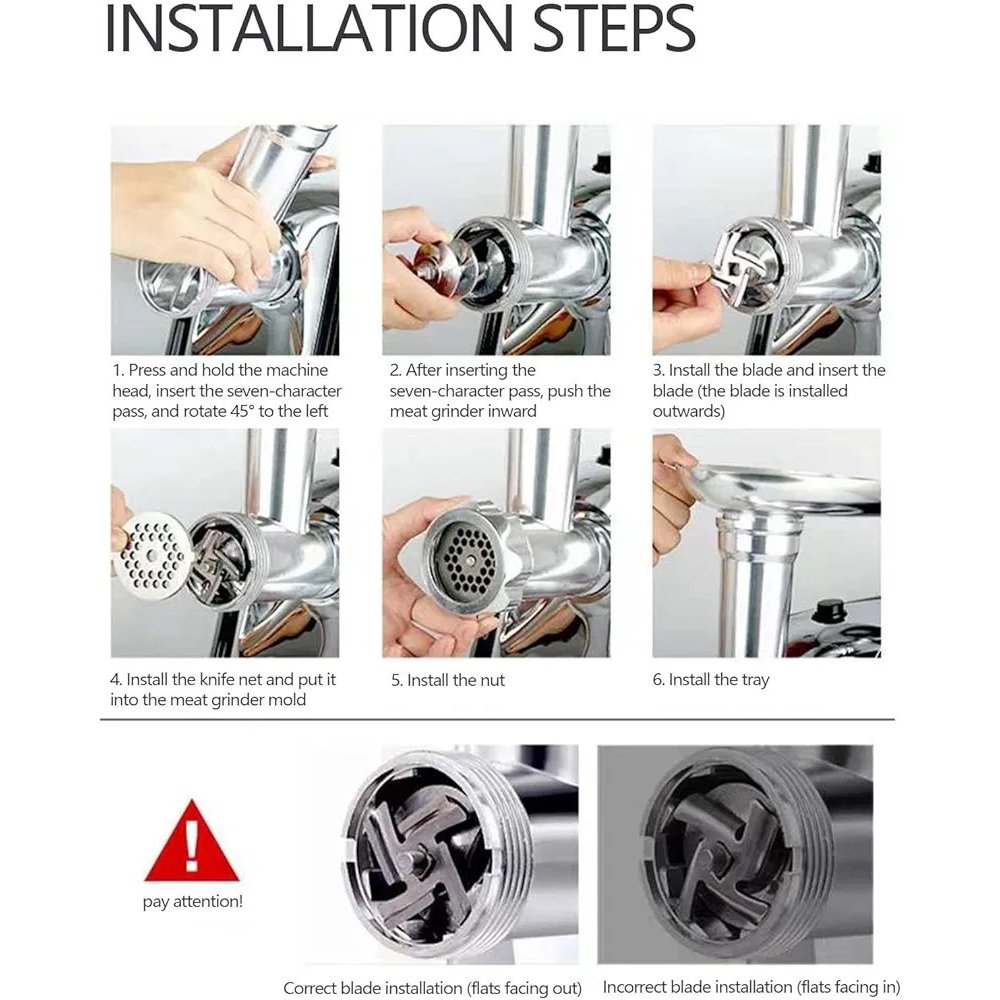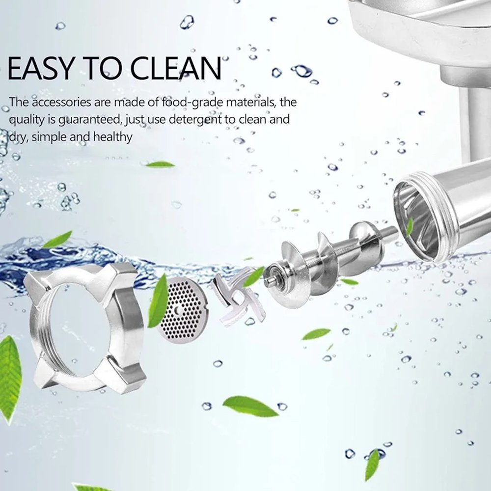 Hachoir électrique 2500W avec accessoires. Facile à assembler et nettoyer, il hache et mélange efficacement. En acier inoxydable avec moteur en cuivre pour une longue durée. Idéal pour une utilisation domestique.