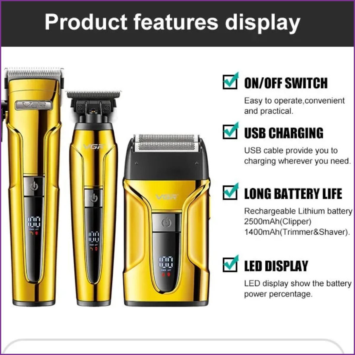 Kit 3en1 Tondeuse à Cheveux VGR V-694 YL1381