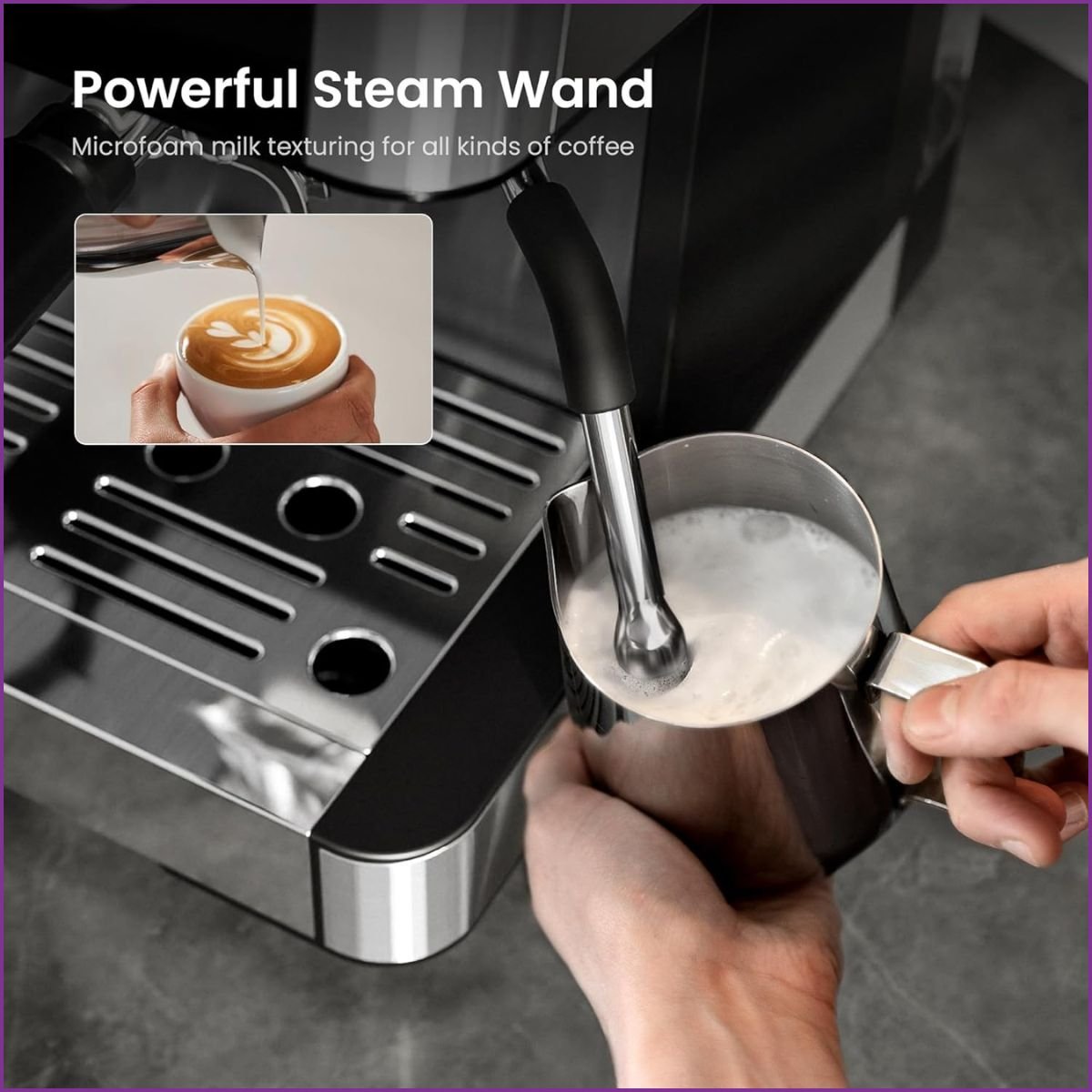 La machine à café express PROVA 850W est conçue pour les amateurs de café qui recherchent performance, simplicité et design élégant. Avec sa puissance de 850 watts et son grand réservoir de 1,8 L, elle permet de préparer plusieurs boissons chaudes sans effort.