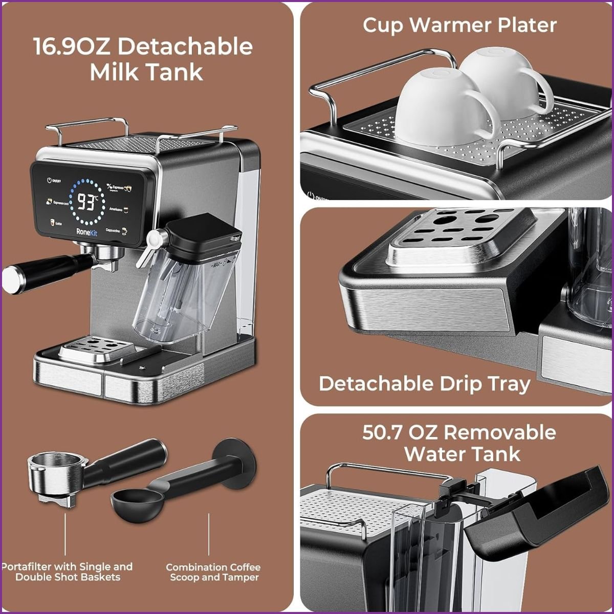 - Réservoirs Amovibles : Les réservoirs d'eau (1,5L) et de lait (500ml) sont entièrement amovibles pour un nettoyage facile et un remplissage sans effort.