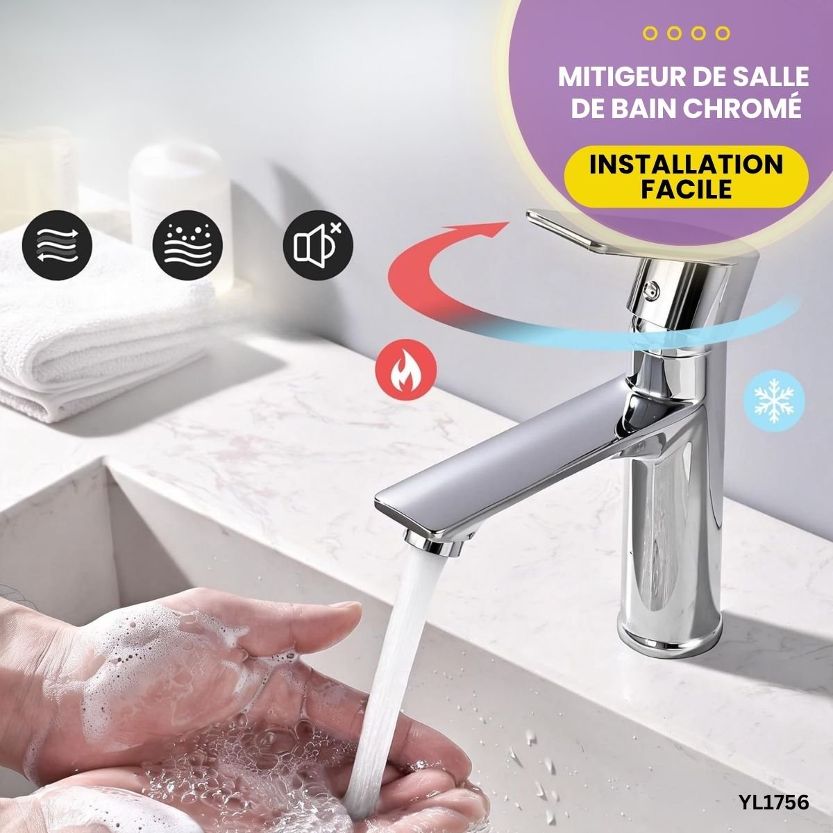 Optimisez votre salle de bain avec ce mitigeur chromé haute qualité. Économisez d’eau grâce à son aérateur intégré. Jet doux, silencieux et sans éclaboussures.