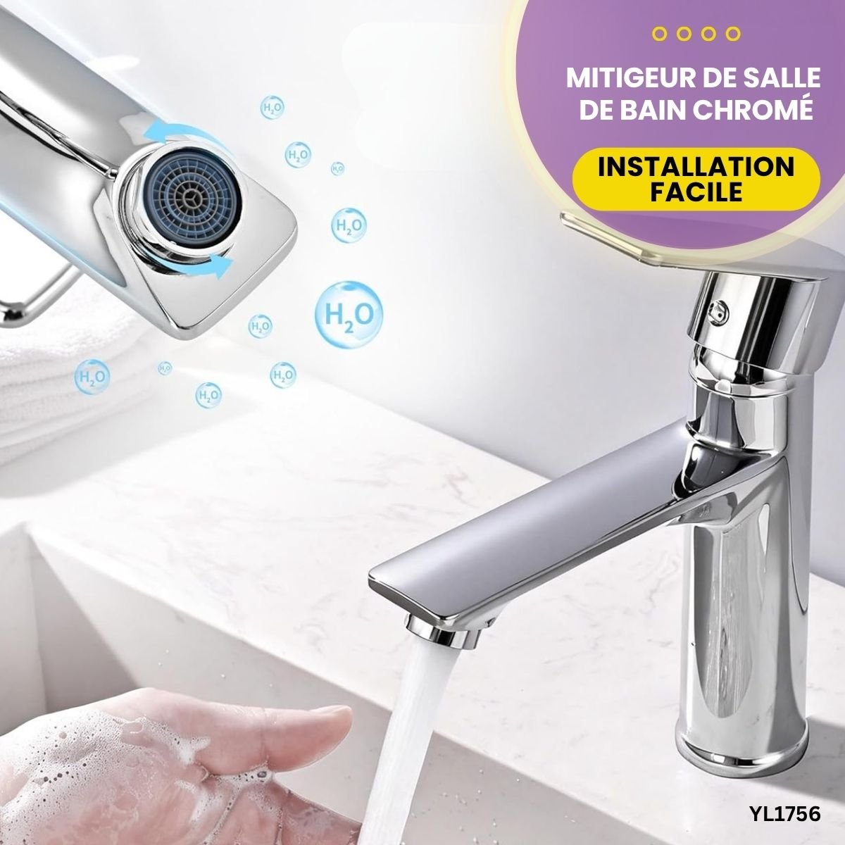 Installation Universelle : Conçu pour s'adapter rapidement sur tous les lavabos et vasques standards.