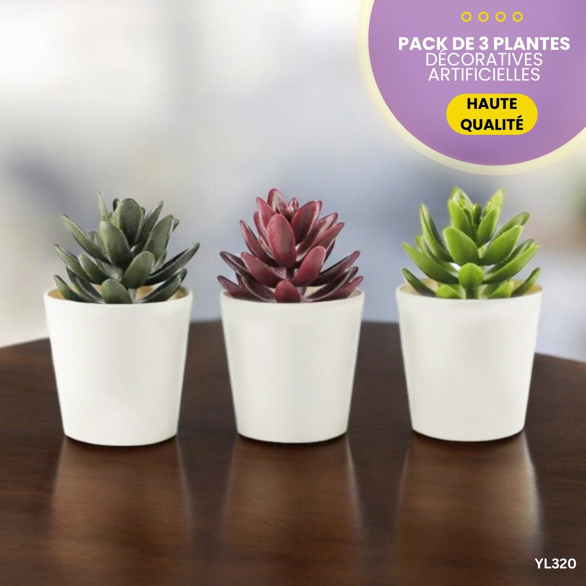 Pack de 3 succulentes artificielles pour une touche de verdure sans entretien.
