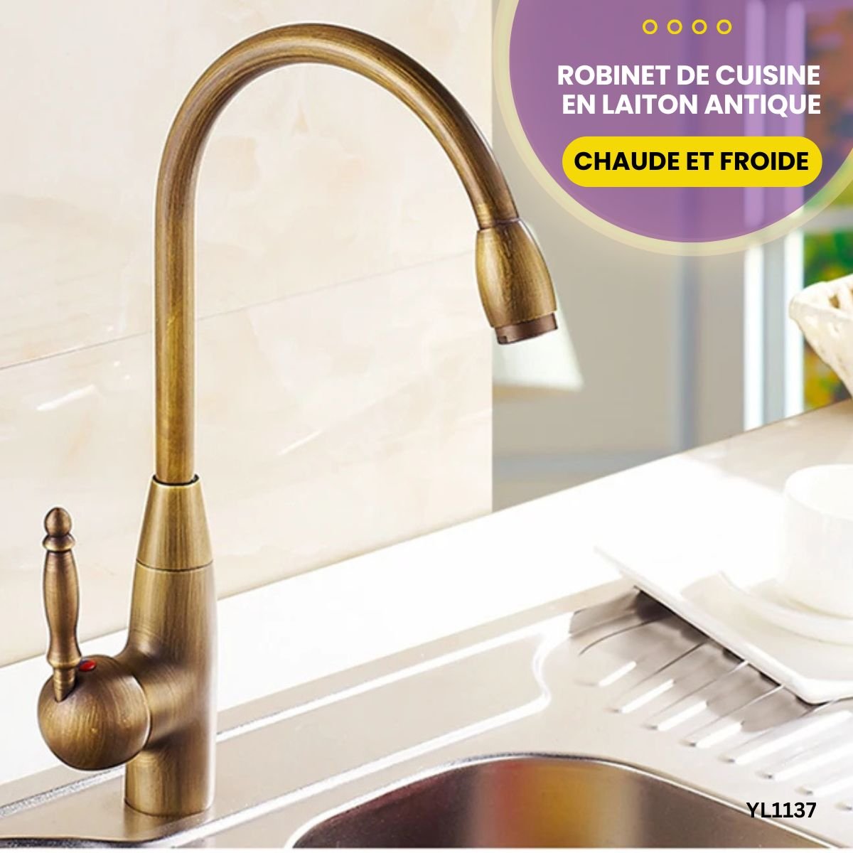 Ajoutez une touche de sophistication à votre cuisine avec ce robinet en laiton antique.