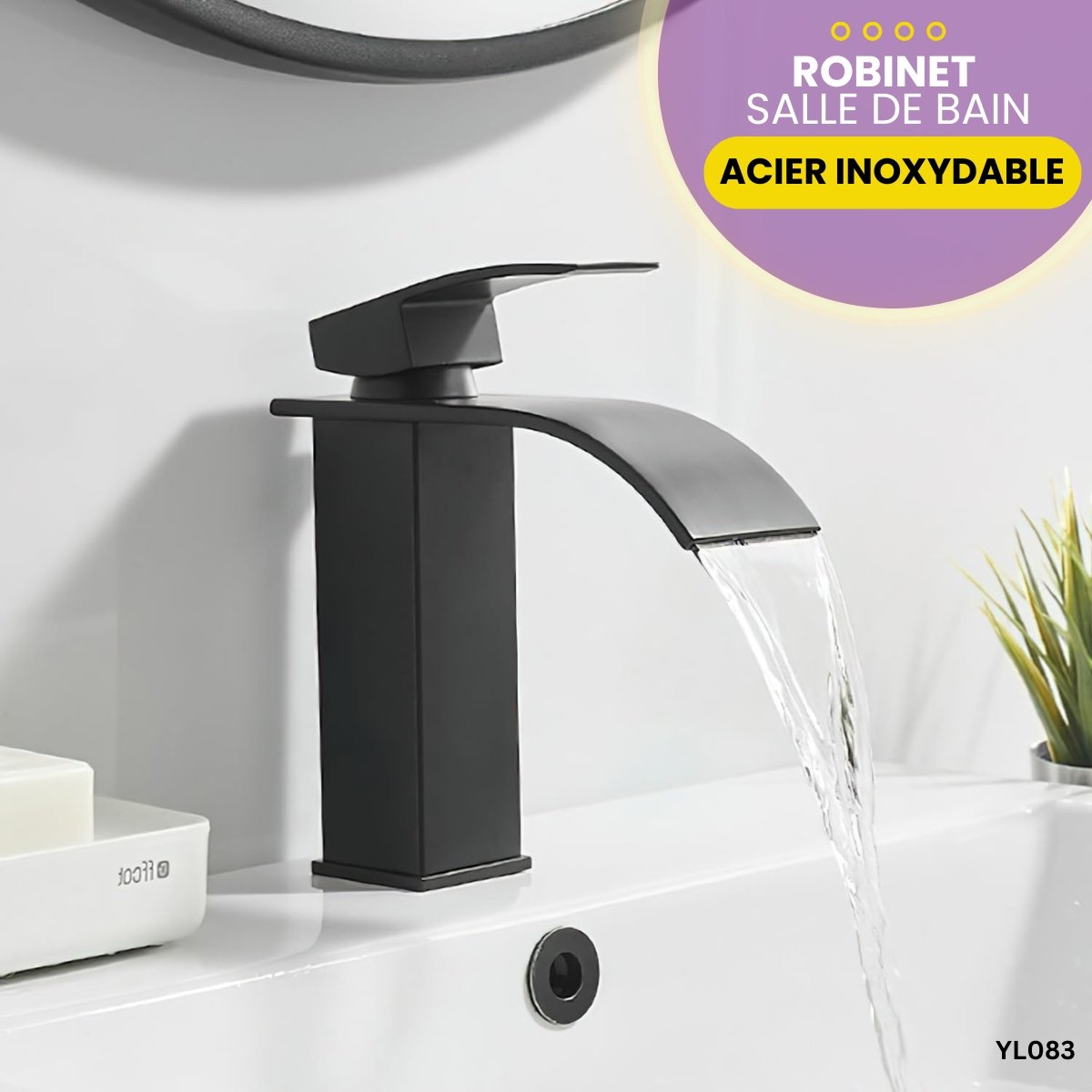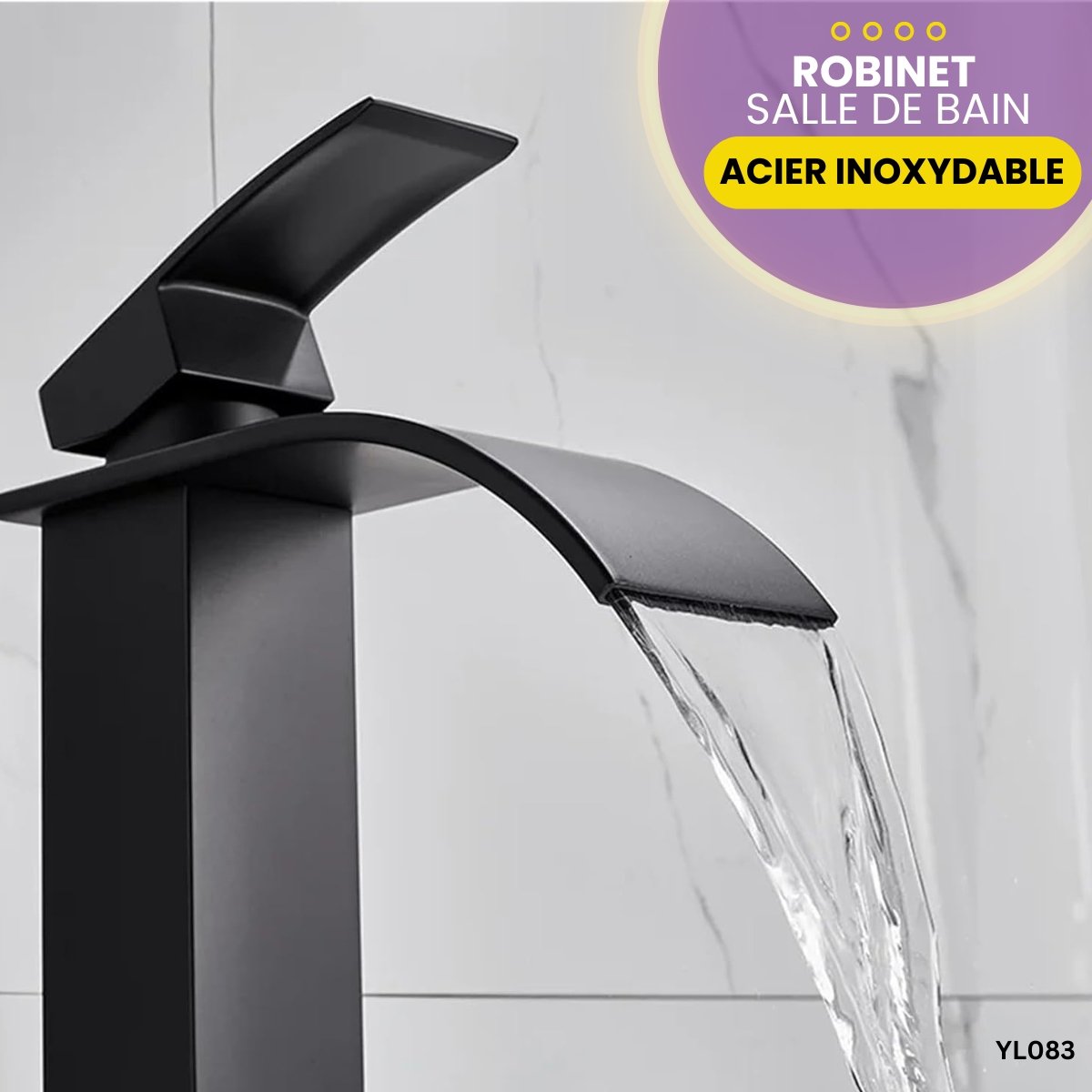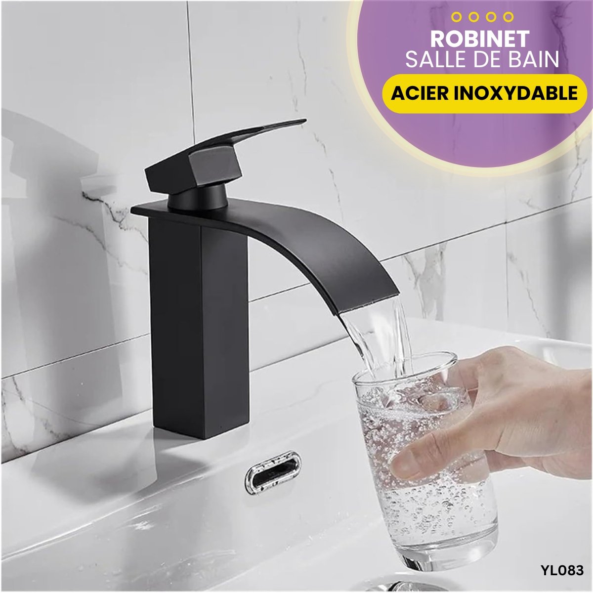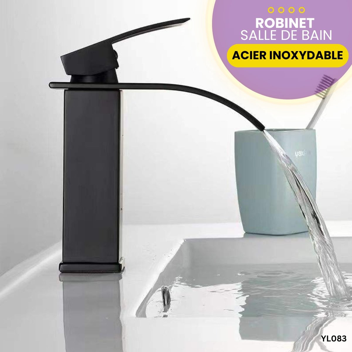 Robinet Lavabo Cascade Noir Monocommande en acier Inoxydable, chaud et froid, Robinet Lave Main Noir pour salle de bain.