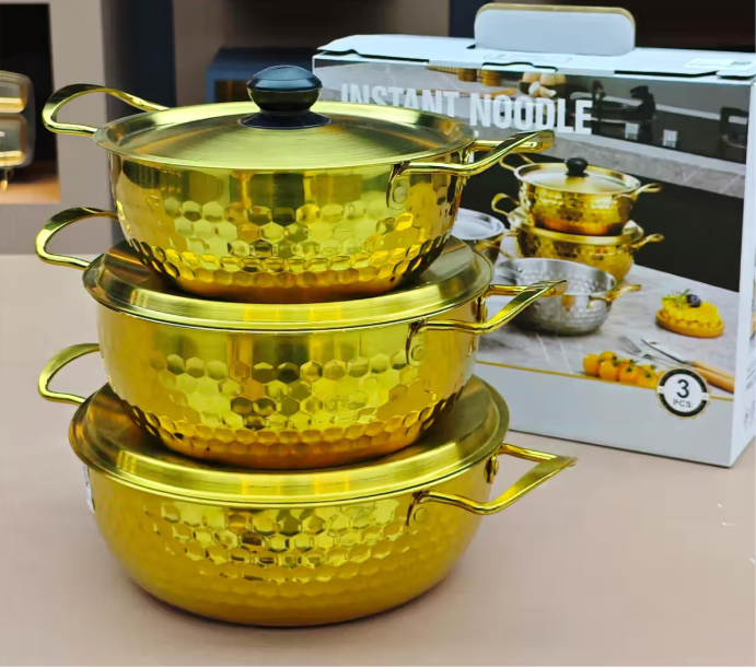 Ce lot de 3 faitouts en acier inoxydable doré allie durabilité, résistance et élégance.