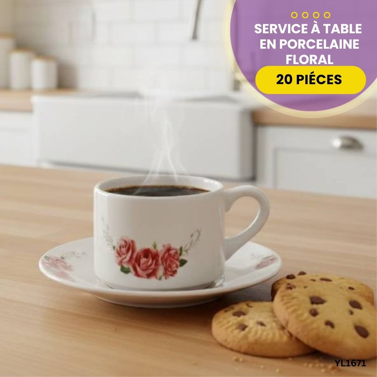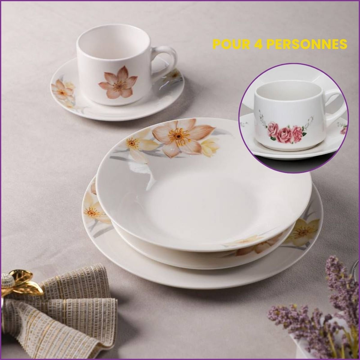 Sublimez vos repas avec ce service de table 20 pièces en porcelaine premium. Design floral élégant, complet pour 4 personnes et compatible lave-vaisselle.