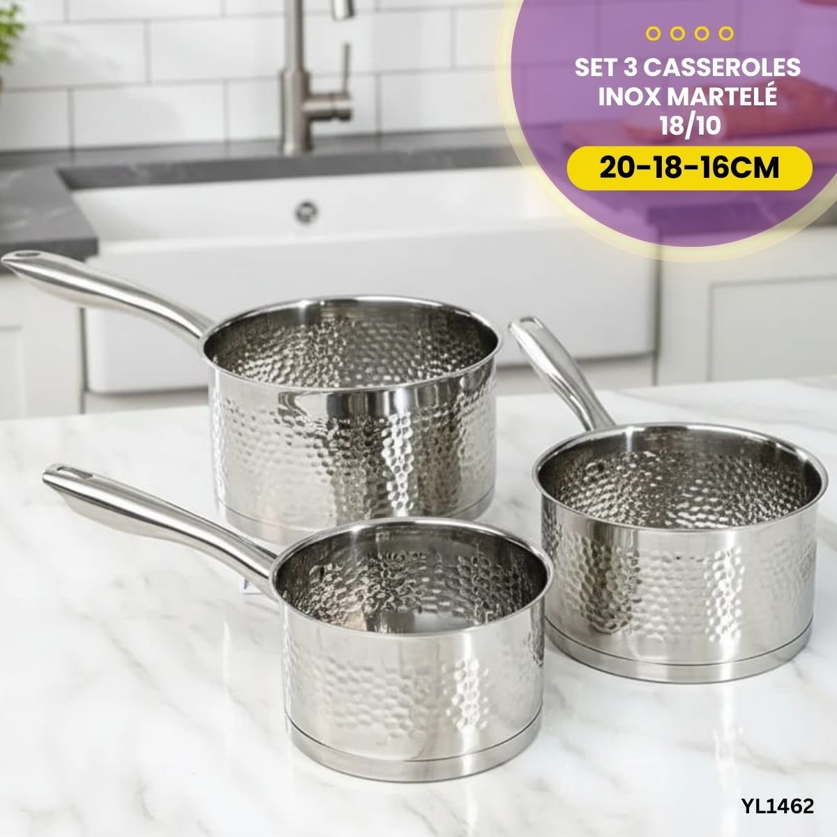 Set 3 Casseroles Inox Martelé YL1462
