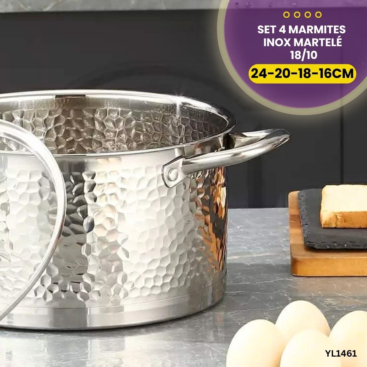 Set 4 Marmites Inox Martelé YL1461