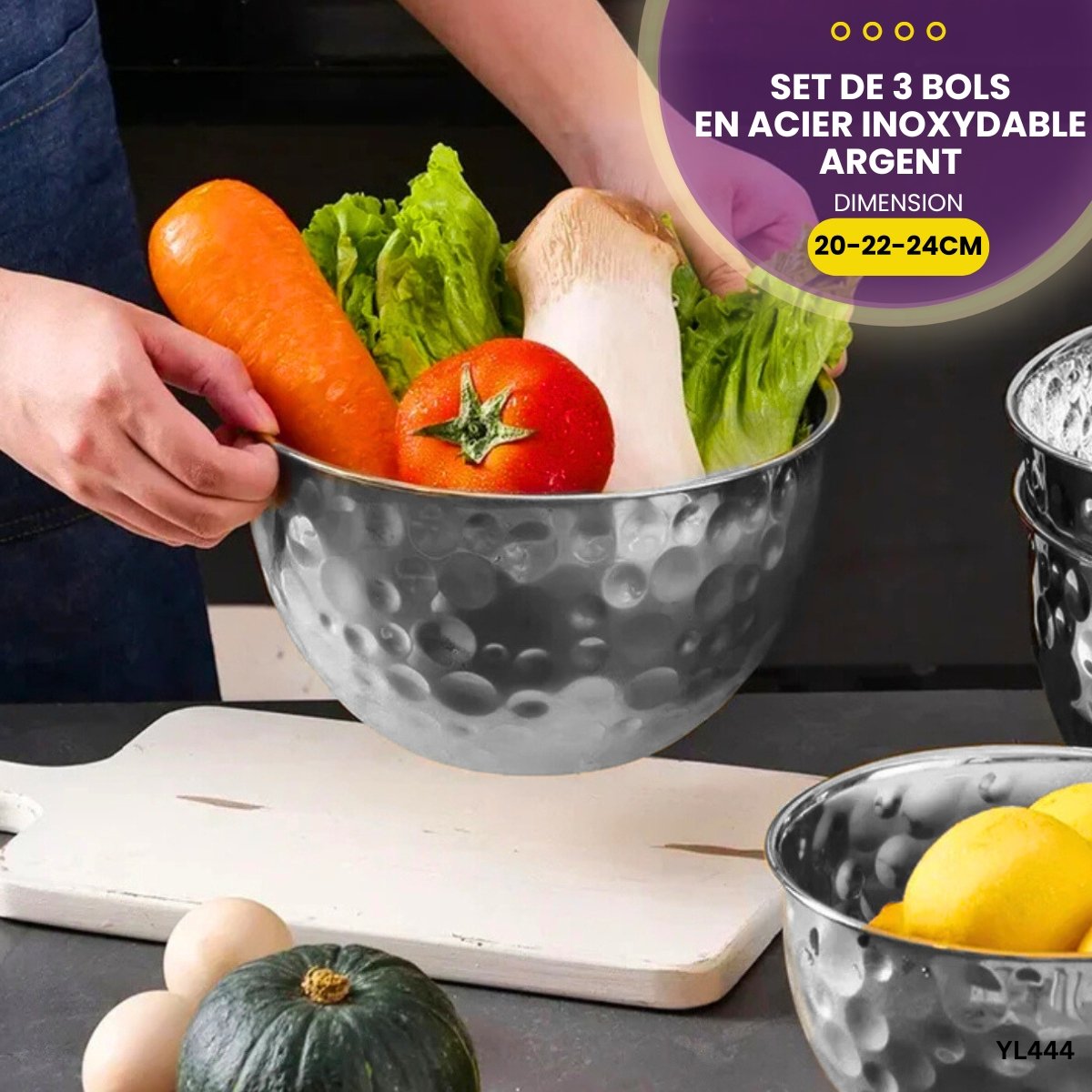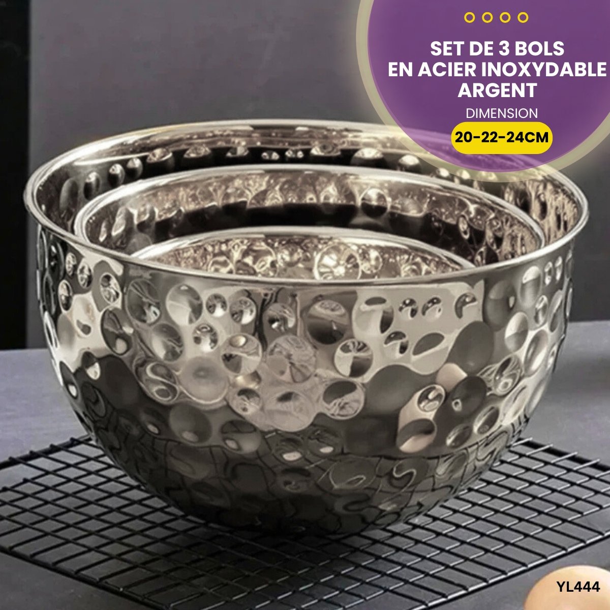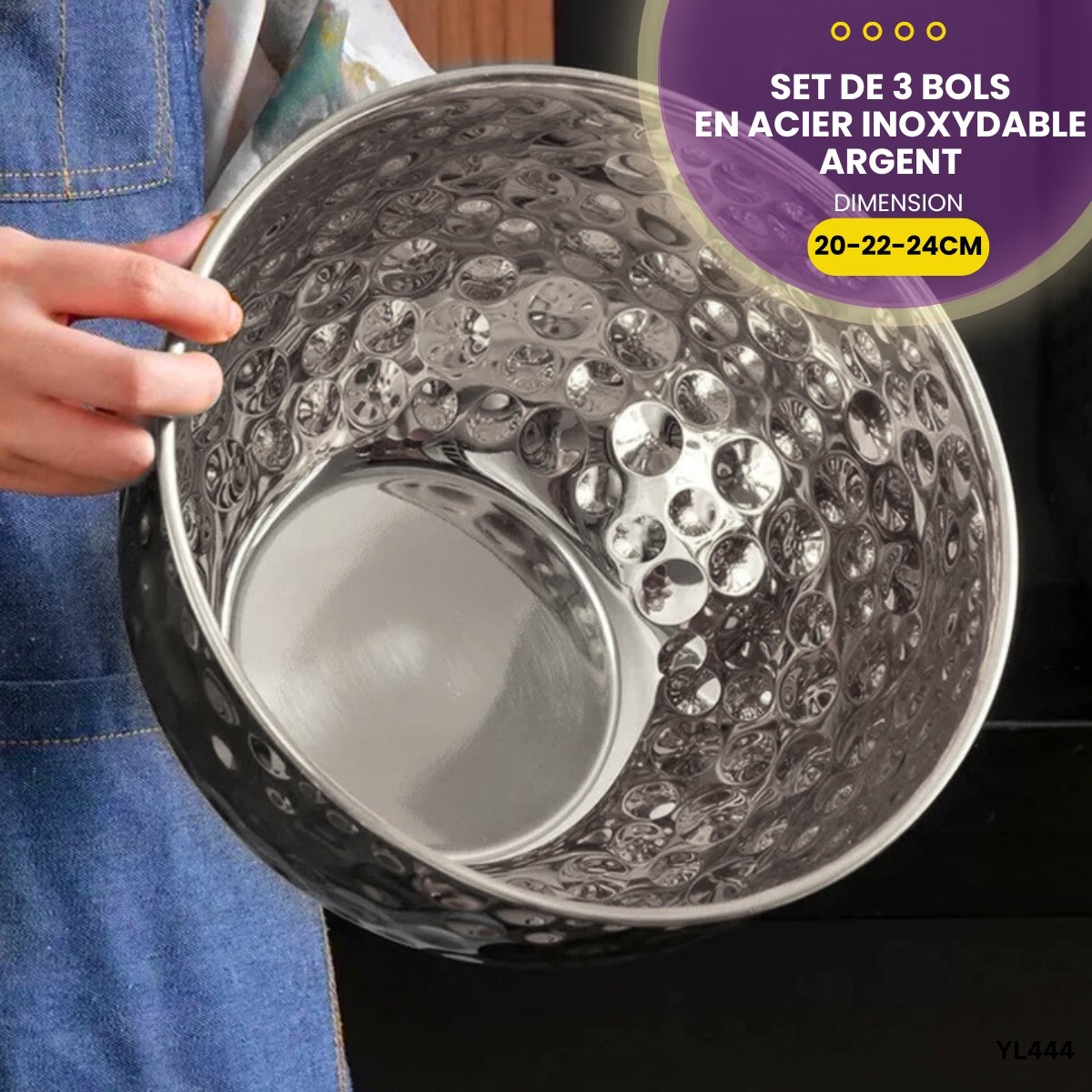 Set de 3 bols en acier inoxydable YL444