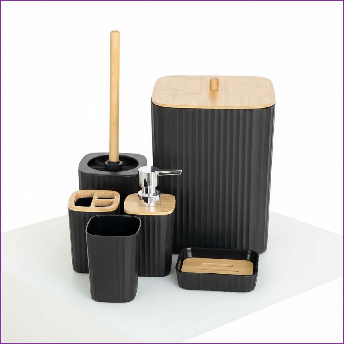 Sublimez votre salle de bain avec ce set de 6 pièces en bambou naturel et ABS. Un mélange élégant, léger et durable pour une organisation zen et moderne.