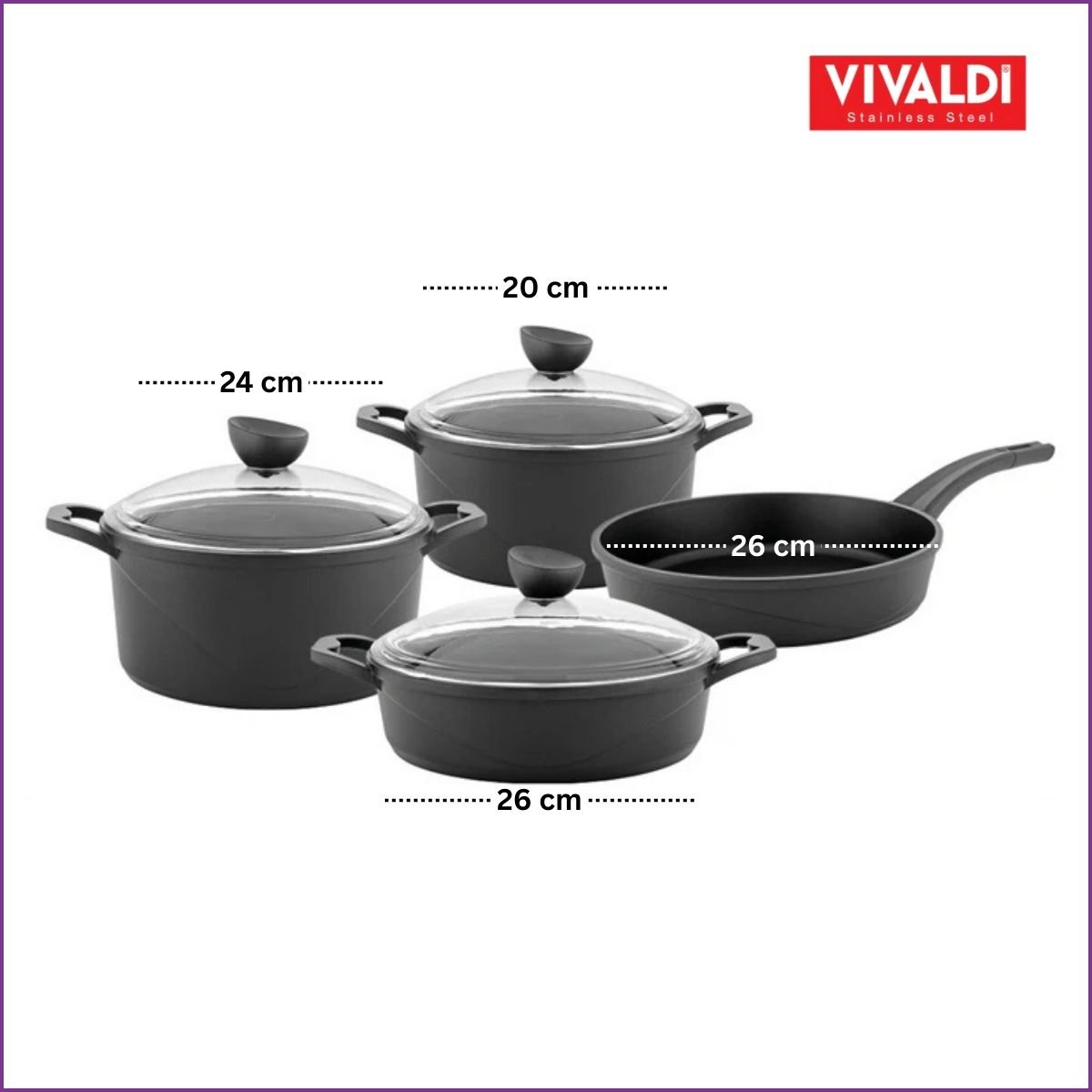 Découvrez le set Vivaldi Akad 7 pièces en granite . Revêtement antiadhésif ultra-résistant, boutons Soft-Touch et couvercles Pyrex. .
