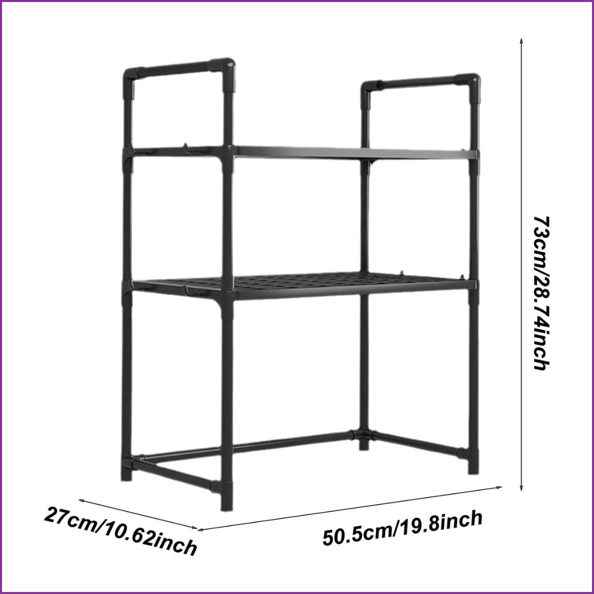 Optimisez votre espace avec ce support de rangement multifonction en noir. Parfait pour la cuisine, il permet de ranger vos ustensiles, bocaux et même votre micro-ondes, tout en offrant une solution décorative et pratique.