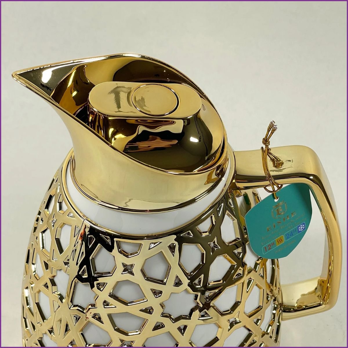 Thermos haut de gamme 1 L – Design doré élégant avec finition orientale. Idéal pour garder le café ou le thé chaud pendant plusieurs heures. Parfait pour les réceptions, la maison ou les cadeaux raffinés.
