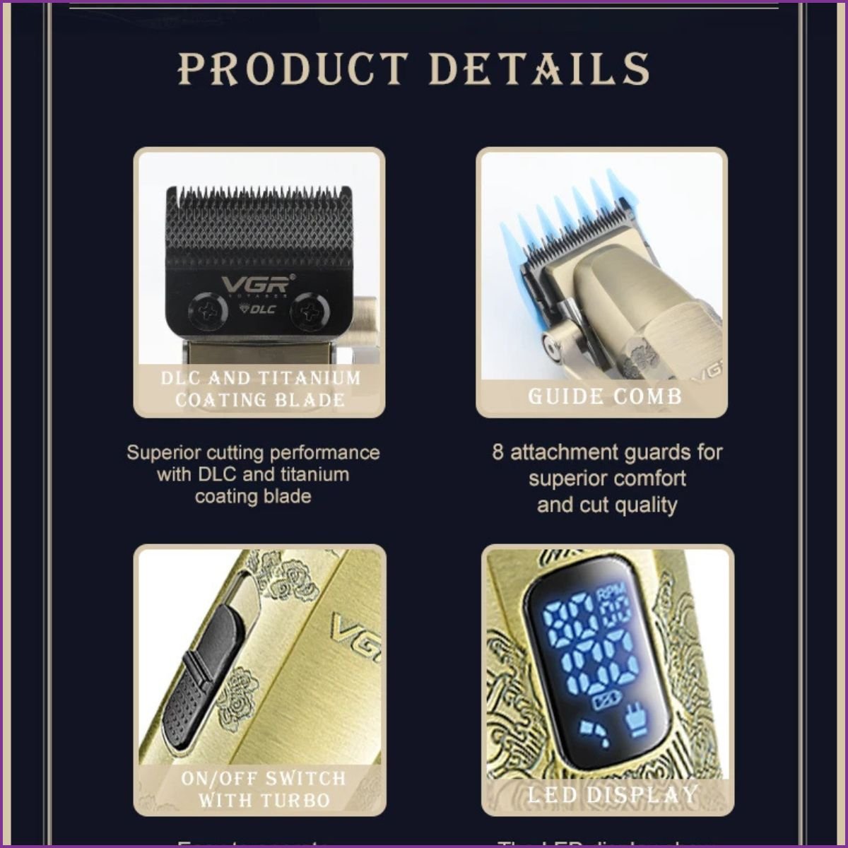 Faites de chaque coupe une œuvre d'art avec la VGR V-036, l'outil qui allie l'esthétique du barbier traditionnel à la technologie moderne.