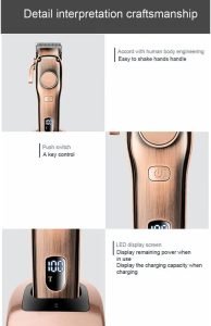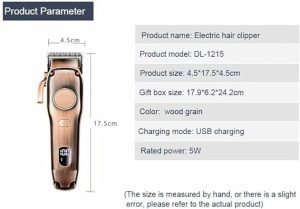 Tondeuse cheveux métallique DALING DL-1215 avec afficheur et support, rechargeable avec un câble USB fournis